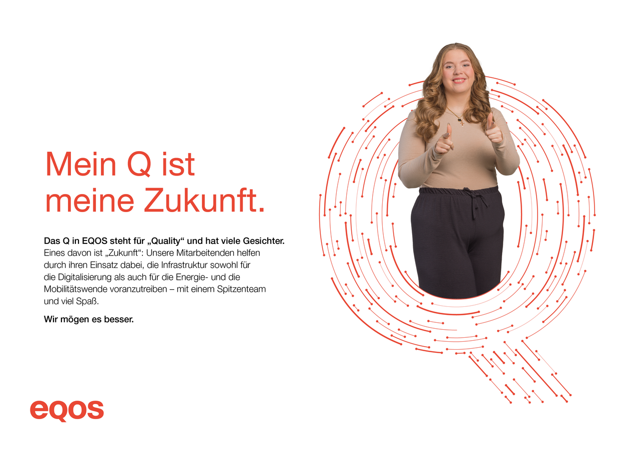 Als Dienstleister für kritische Infrastrukturen gestalten wir die Netze der Zukunft in der Energieversorgung, der Telekommunikation und im Schienenverkehr. Wir schaffen Verbindungen, die unsere Gesellschaft am Laufen halten – zuverlässig, leistungsstark und zukunftssicher. Was uns dabei verbindet, ist ein gemeinsamer Anspruch: Qualität. Doch was Qualität bedeutet, ist individuell – bei EQOS hat jede und jeder sein persönliches „Q“. Für die einen steht es für Präzision, für andere für Teamgeist, Verlässlichkeit oder Innovationsfreude. Diese Vielfalt macht uns als Team stark – und unsere Arbeit besser.